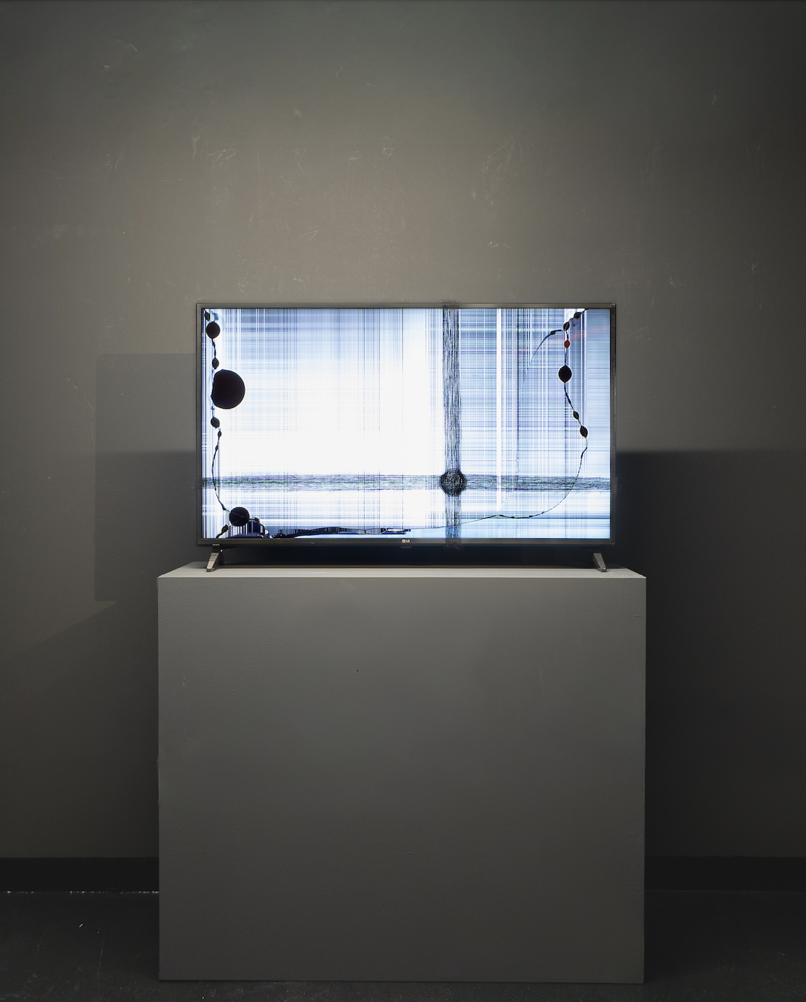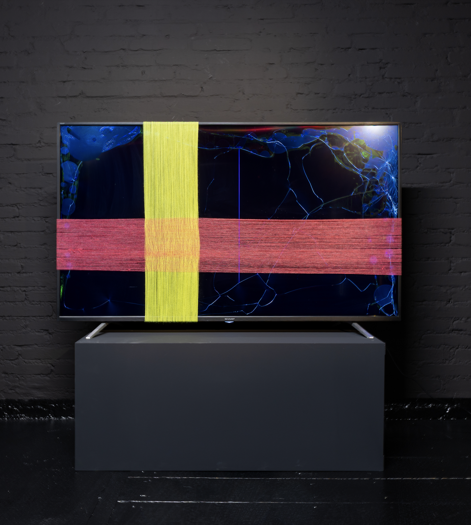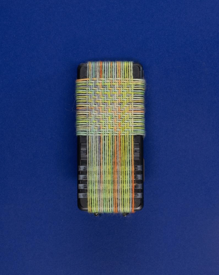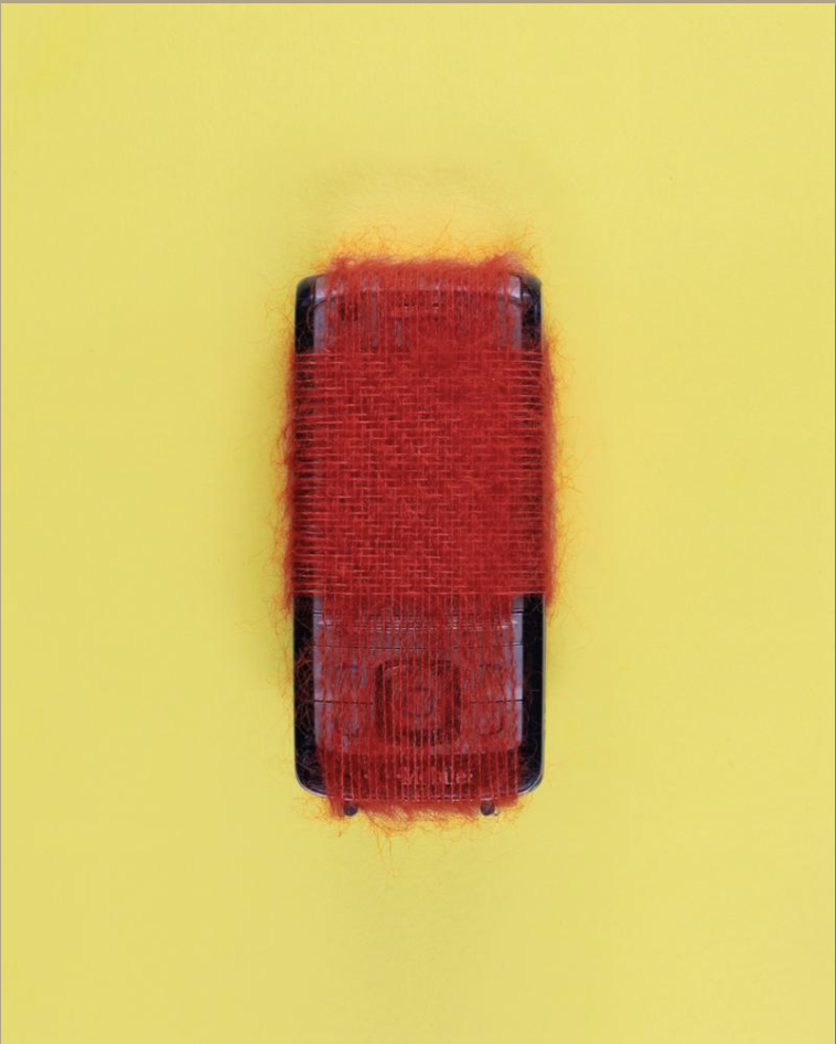 Aryana Sheibani’s exhibition at Lele Projects presents the endless possibilities of weaving as a medium. Like poison ivy, thread spreads across objects and gives them a new life, a new beauty, transforming forms so familiar that they often stop catching our attention. The exhibition brings together three types of decommissioned or broken gadgets like televisions, iPads, and brick phones, each united by the new life gifted to them through the artist’s hand.